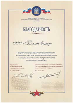 Благодарность ООО «Белый ветер»